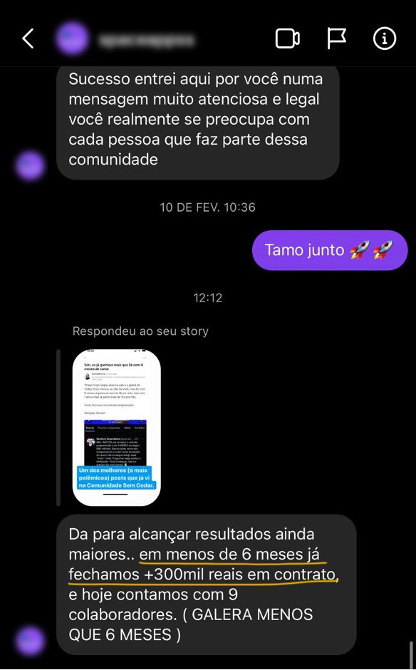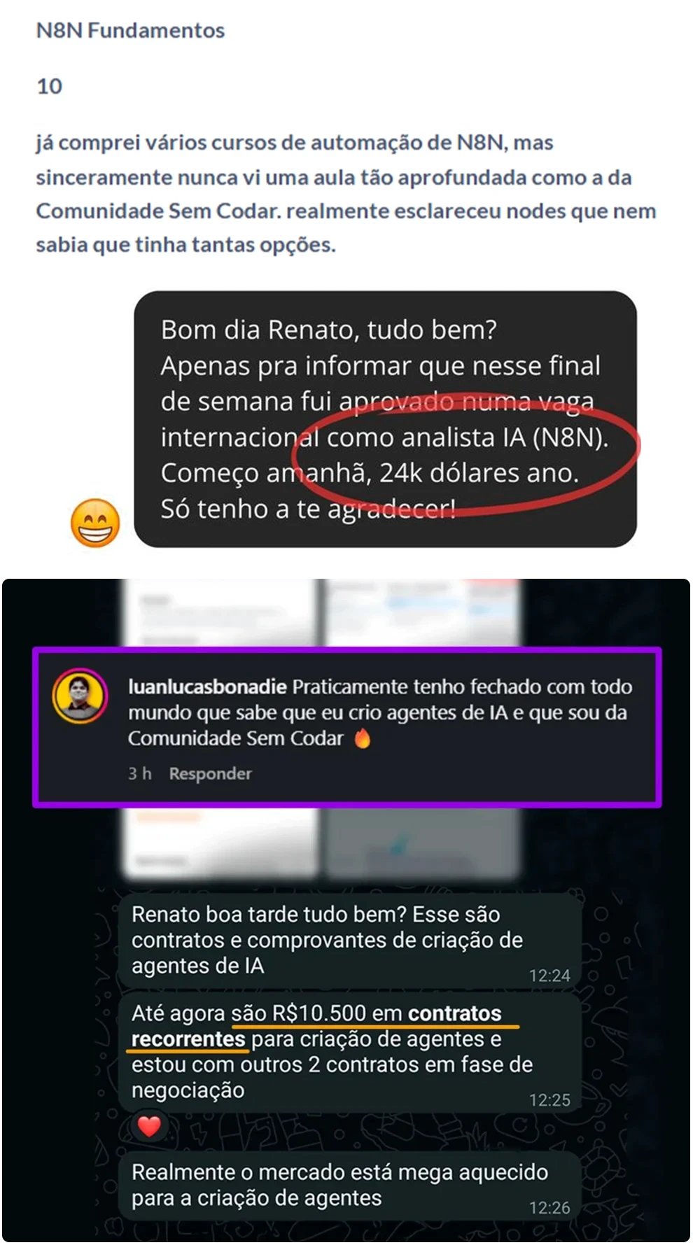 O maior curso No Code + IA da América Latina, com alunos implementando soluções e faturando alto no Brasil e no exterior.